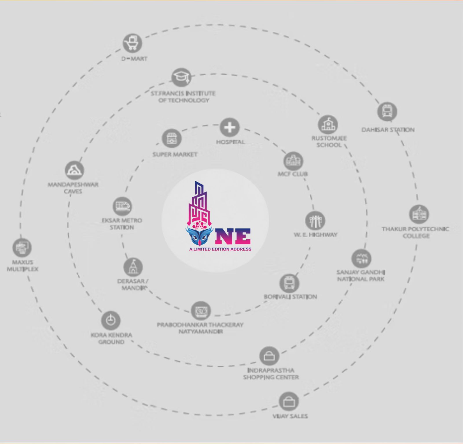 Located Off S.V. Road, Opp. Bhagwati Hospital – just 1.2 km from Borivali Station, minutes from Metro, WEH & Link Road.